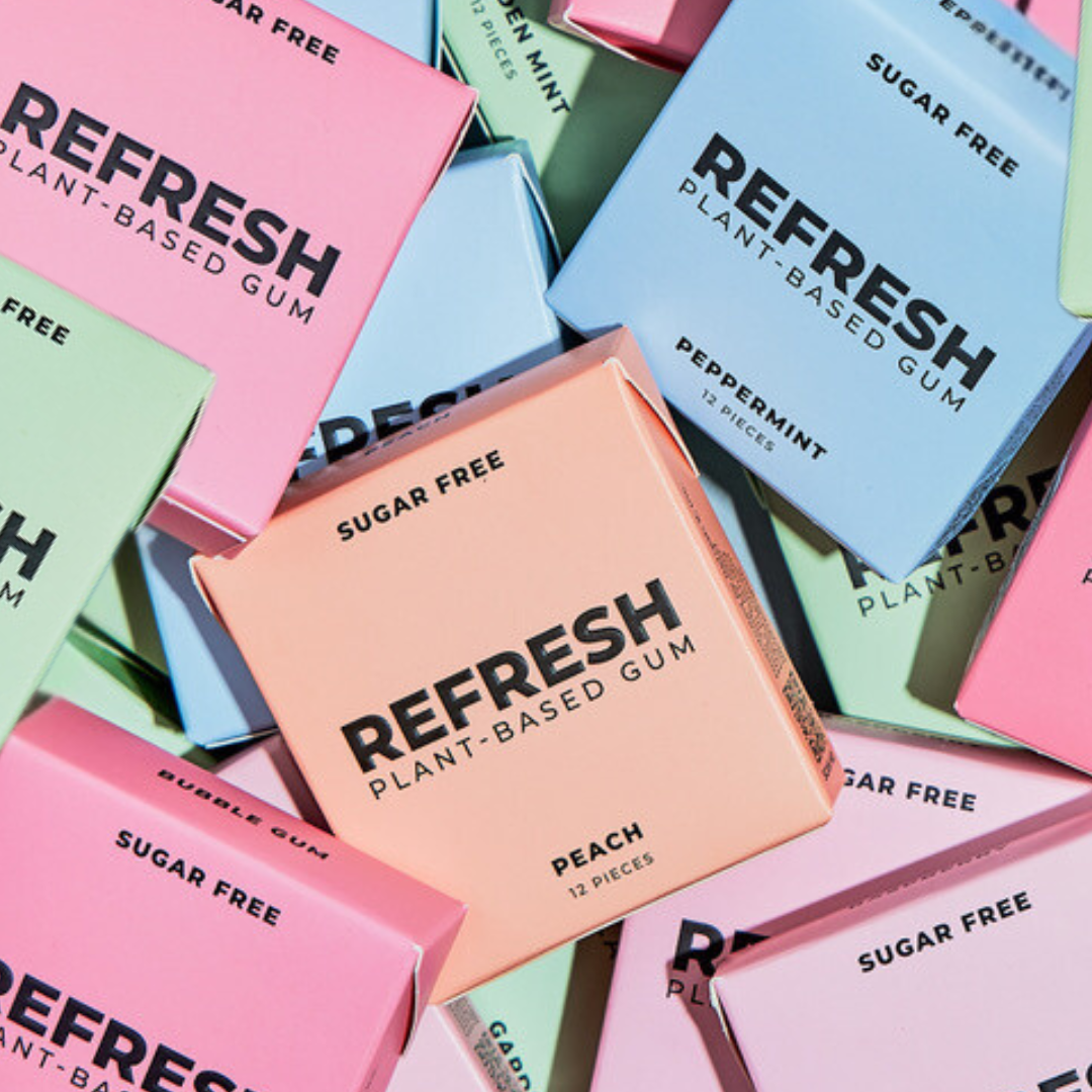 Your taste buds are in for a treat with Refresh Gum's full Variety Pack! Start fresh with Garden Mint, enjoy the bold pop of Raspberry, cool off with classic Peppermint, savor the nostalgic sweetness of Bubble Gum, and finish with the juicy delight of Peach. Clean ingredients and vibrant flavors make every chew unforgettable!